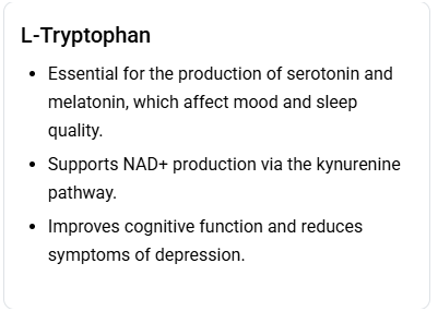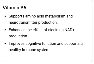 - Resveratrol: A polyphenol that may enhance NAD+ effectiveness